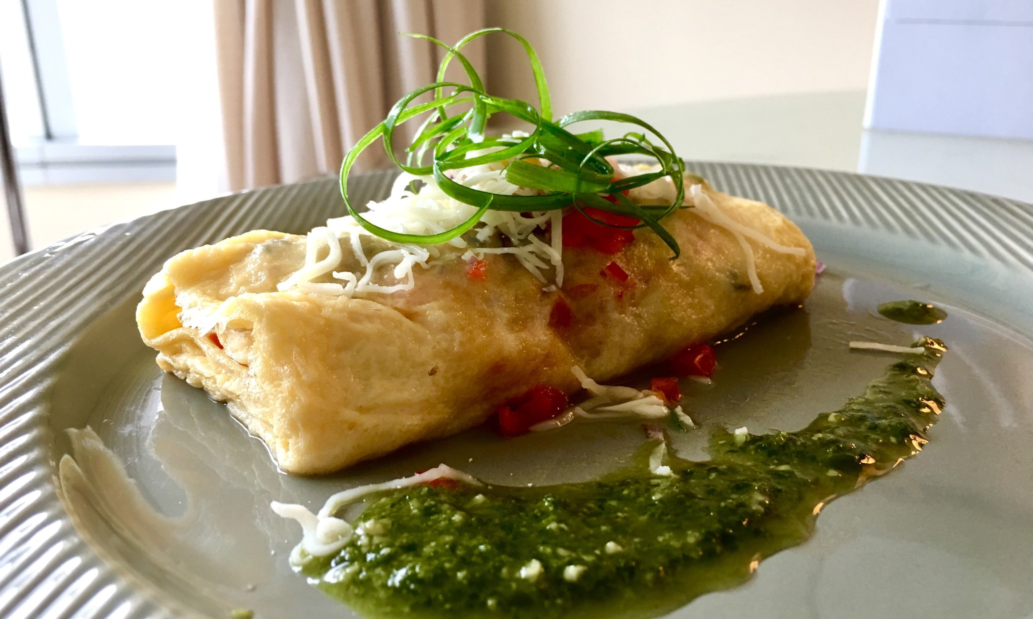 - 將蛋捲推直鍋子前端,起鍋裝盤